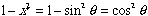 文字xをうまく置き換えて√の中がなにかの2乗の形にならないかと考えます。 とおけば となることに気づきます。このとき ※xが0→1ということだけなら、θの範囲は例えばとしてもよいのですが、 ここでは予め、上の式の絶対値の中身が0以上になるように、θの範囲を としてあります。そこで